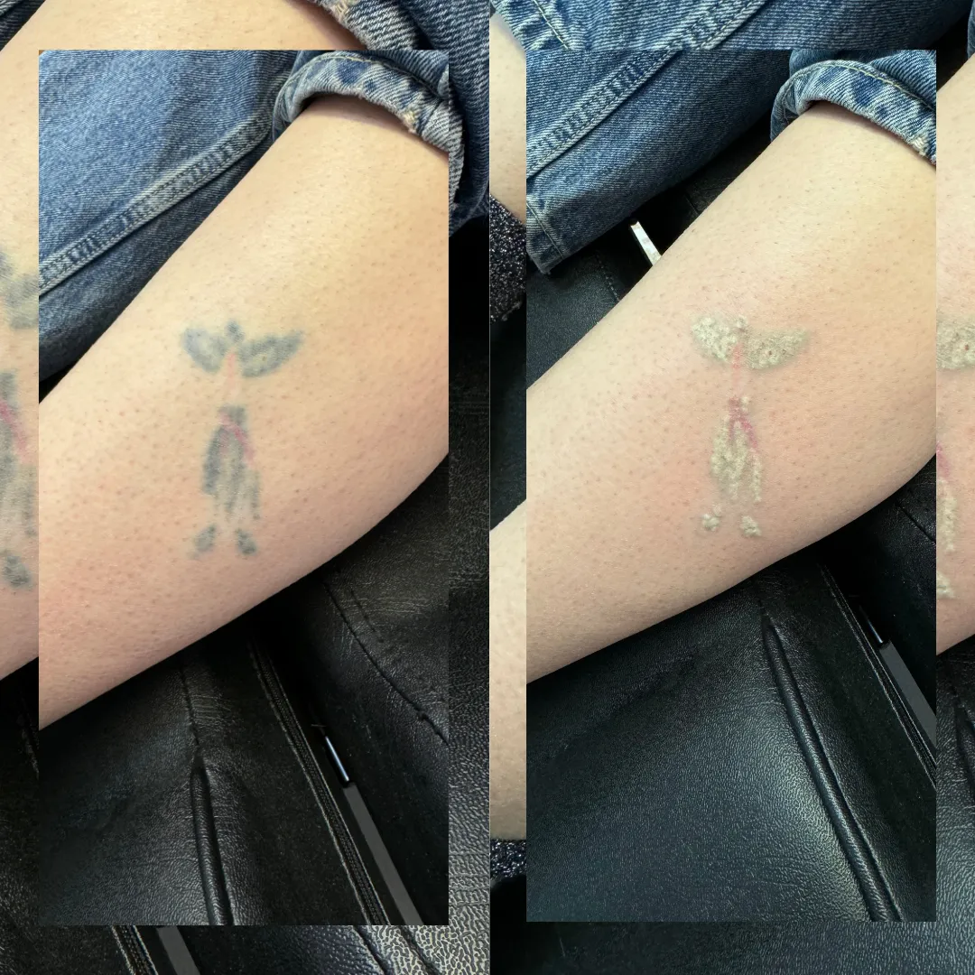 Laser tattoo removal is a safe and effective way to gradually fade or eliminate unwanted tattoos. Our advanced laser technology targets the tattoo ink particles, breaking them down into tiny fragments that your body's natural immune system can then safely remove.